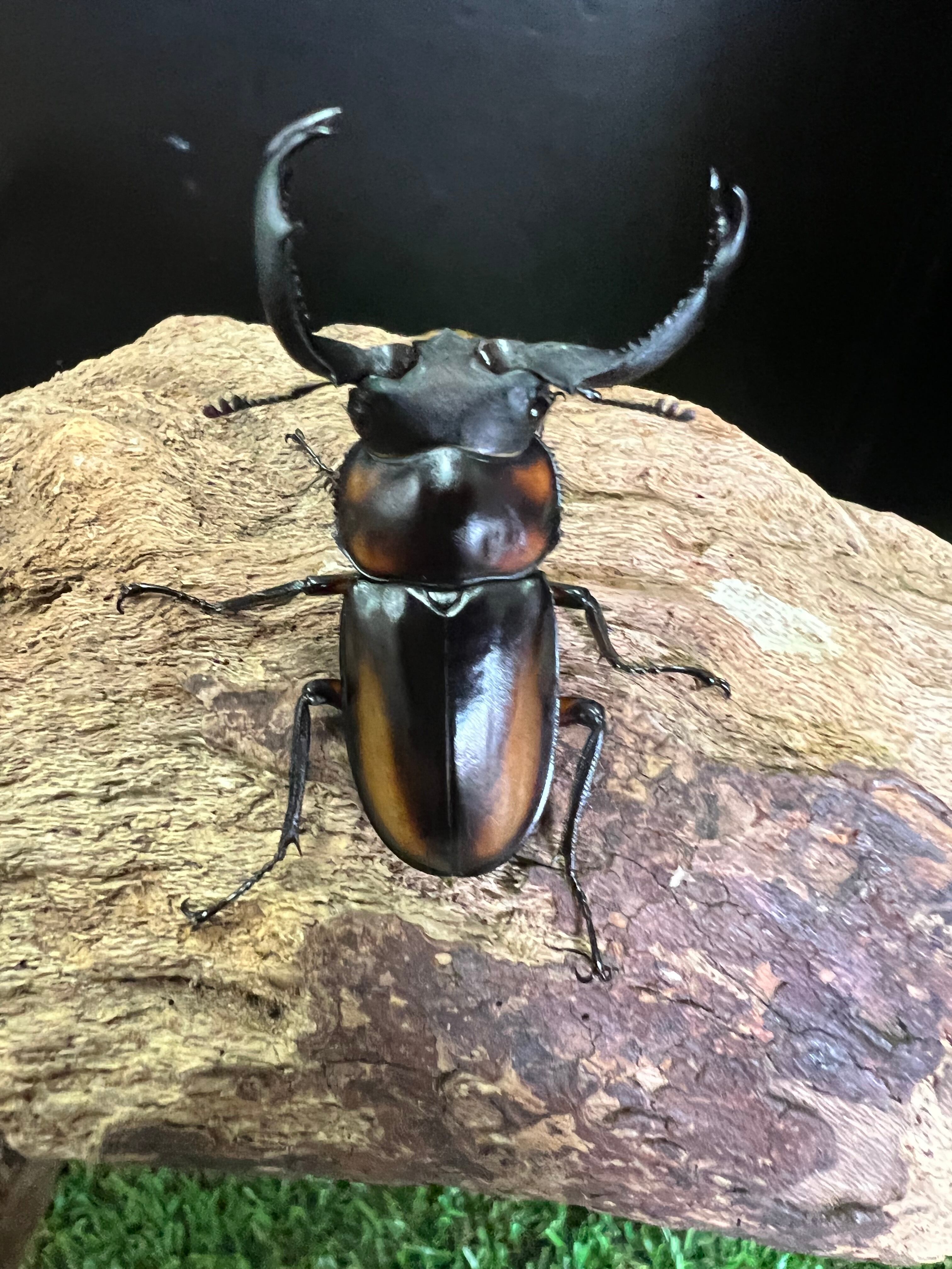 サイズはノギスで顎先(角先)から上翅末端までの最大値で計測しておりますが素人寸法ですので多少のサイズ誤差についてはご容赦ください|ω・`)